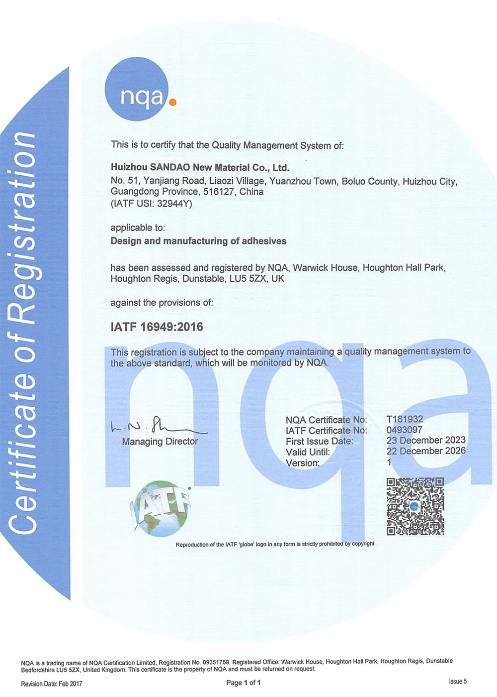 Huizhou SANDAO New Material Co., Ltd.